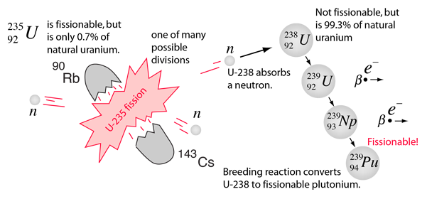 Breeding Plutonium-239Fissionable plutonium-239 can be produced from non-fissionable uranium-238 by the reaction illustrated.