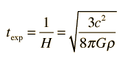 Temperature and Expansion Time in the Standard Big Bang ModelIn the big bang model of the expansion of the universe, the expansion time can be expressed in terms of the Hubble parameter ,and the Hubble parameter can be related to a model of expansion with the use of the Friedmann equation. .For early stages of the expansion of the universe, it's energy density was dominated by radiation, with matter present only as a negligible contaminant. Under those conditions, the density in the Friedmann equation can be taken as that associated with the radiation field and related to the ratio of the temperature at a given time and the current temperature of the cosmic background radiation. This gives .The dependence on the fourth power of the temperature comes from the Stefan- Boltzmann law. Substituting into the Friedmann equation gives an expression of the expansion time as a function of temperature in the radiation-dominated early universe. .The energy densities of radiation and matter are about equal at the temperature of the transparency point, about 3000 K. At much lower temperatures, the energy is dominated by matter. The energy density of the matter as a function of temperature is given by .The resulting expression for expansion time from the Friedmann equation is then .