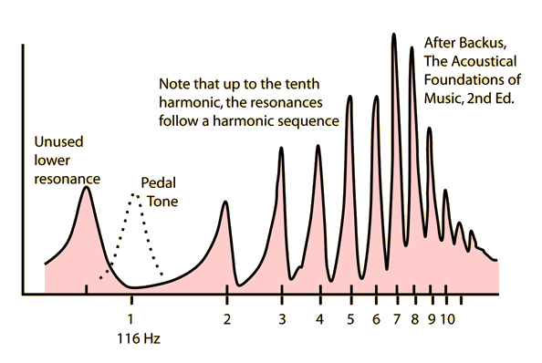 Trumpet Resonance CurveA trumpet exhibits natural resonant frequencies which follow a harmonic sequence fairly closely up to the tenth harmonic. This harmonic sequence is obtained with the help of the bell effect and the mouthpiece effect on the resonances. A unique pedal tone can be played in addition to the resonant frequencies. ![]() While the pedal tone of the trumpet can be demonstrated, it is much harder to play than with the trombone and other bass brass instruments and is not considered to be as useful, musically.