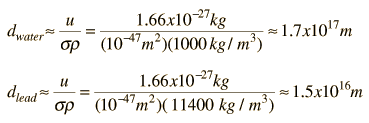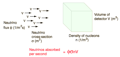 The original neutrino detection by Reines and Cowan was based on the reaction ![]() This interaction is related by crossing symmetry to the decay of the neutron, the simplest example of beta decay. It is in fact sometimes referred to as "inverse beta decay". So it would appear that the study of beta decay could give an approach to the cross-section for the neutrino interaction. ![]() The approach to calculating the cross-section for the interaction is based on Fermi's Golden Rule , and if a matrix element can be found for the weak interaction in one of these reactions it should be comparable in the other. Estimates of the weak interaction coupling strength come from applying the Fermi theory of beta decay in some special cases. Krane does this to arrive at an estimate of 10-43 cm2 = 10-47 m2 for the neutrino cross section in the beta decay range of energy. This is about 20 orders of magnitude less than the scattering cross-section for two nucleons at low energy! With this nominal cross section, some estimates of rates of interaction can be made. Multiplying the cross section times the nucleon density gives a number of interactions per meter, and the inverse of that is an estimate of the mean free path. For water with a density of 1000 kg/m3, the mean free path for a neutrino can be estimated from ![]() One perspective on these distances is to compare to a light year