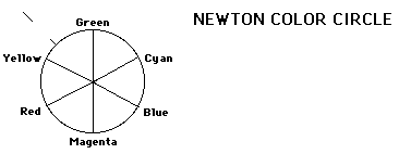 4. Work your way around the Newton color circle, using the color slides which are a part of the kit. Examine the colors produced when you use colored slides which are two positions apart. In equal mixture, these should give the color between them. Comment on the color you perceive - is it what it is supposed to be?