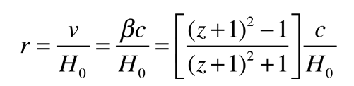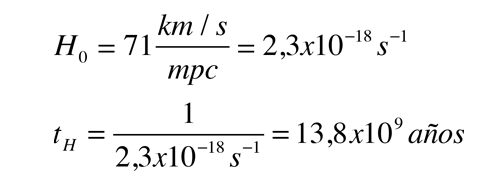 El factor de escala R para un determinado objeto observado en el universo en expansión con respecto a R0 = 1 en el momento presente, puede deducirse de la expresión del parámetro z del desplazamiento al rojo. El parámetro de Hubble tiene las dimensiones del inverso del tiempo, por lo que puede obtenerse un tiempo de Hubble tH invirtiendo el valor actual del parámetro de Hubble.