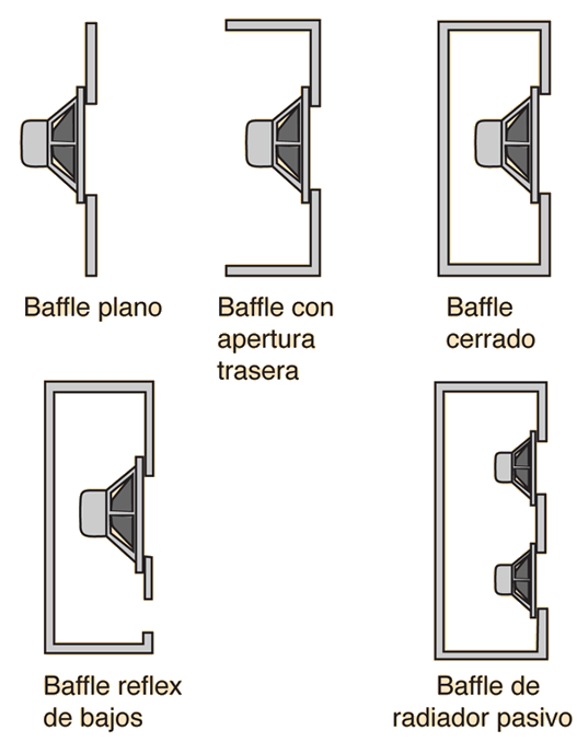 | Tipos de CerramientosEl trabajo de un buen altavoz de alta fidelidad, requiere que esté encajonado debido a un número de propiedades básicas de los altavoces. Con solo poner un simple altavoz dinámico en una caja cerrada, se mejora sustancialmente su calidad de sonido. Los cerramientos modernos de altavoces normalmente involucra a múltiples altavoces con una red de puntos de cruces para proveer una respuesta de frecuencia lo mas uniforme posible a través del rango de frecuencias de audio. Otras técnicas como las empleadas en los bafles reflectores de bajos, se pueden utilizar para extender el rango util de bajos de los altavoces.  La naturaleza del cerramiento puede afectar a la eficiencia y la direccionalidad de un altavoz. El uso de altavoces de cuerno puede proporcionar unas mayores eficiencia y direccionalidad, pero de forma exagerada, puede reducir la fidelidad del sonido. La disposición en columnas de altavoces puede proporcionar cierta direccionalidad.