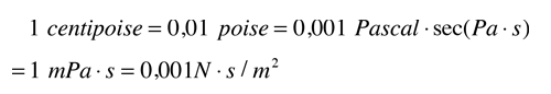 siendo la unidad SI estándar el Pascal segundo o Poiseuille. Esa unidad no demuestra su conveniencia en muchos usos, pero téngase en cuenta que la viscosidad del agua a 20°C es casi exactamente 1 si se expresa en centipoises o miliPascal segundo. Por ello, al igual que su conveniente densidad de 1 gm/cm3, el agua a 20°C proporciona un estándar de comparación conveniente para la viscosidad.