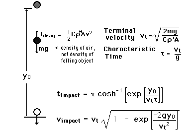 Caida Libre desde una Altura EspecíficaPara un objeto que cae desde el reposo a través del aire con arrastre cuadrático, los parámetros del movimiento se expresan normalmente en términos de velocidad límite y tiempo característico: