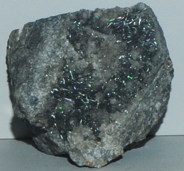 Esta muestra de boulangerita se exhibe en el Museo Smithsonian de Historia Natural. La boulangerita es un mineral de sulfuro de plomo y antimonio, con la composición Pb5Sb4S11 . Esta muestra mide aproximadamente 6x6 cm, y procede de Pribram, Cechy, República Checa.