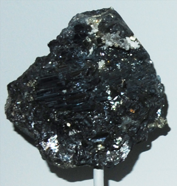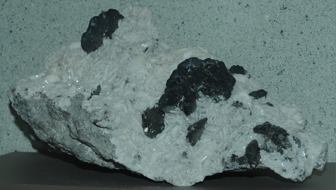 Esto es bournonita con barita. Esta muestra mide unos 22 cm de ancho, y procede de St. Laurent le Minier, Gard, Francia.