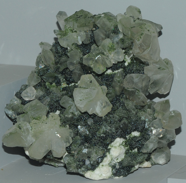 Esta muestra de cerusita mide unos 20x18 cm y procede de Tsumeb, Namibia. Hay un montón de minerales de arseniato verdes como la bayldonita en su zona de origen, por lo que el color verde puede implicar algún contenido de arsénico.