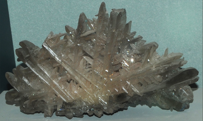 Este es un ejemplo de cristales de cerusita maclados. La muestra mide unos 20 cm de ancho y procede de Tsumeb, Namibia.