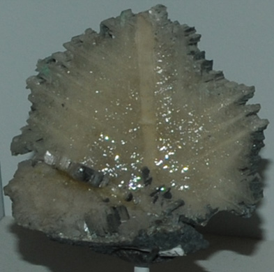 | Esta gran muestra de la izquierda mide aproximadamente 20x16 cm y procede de la mina Flux, Patagonia, Arizona. La sección de abajo muestra el patrón de formación de los cristales de cerusita.