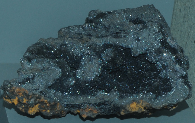 |   | (Zn,Fe,Mn)Mn3O7.3H2OEsta muestra de calcofanita se exhibe en el Museo Smithsonian de Historia Natural. La calcofanita es un mineral de óxido que contiene zinc y manganeso con la composición (Zn,Fe,Mn)Mn3O7.3H2O. La muestra de la izquierda mide unos 14 cm de ancho y procede de la mina Sterling Hill, Ogdensburg, Nueva Jersey. |