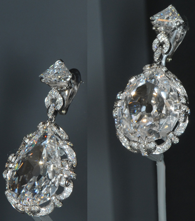 Los grandes diamantes de estos pendientes modernos, estuvieron montados una vez en un par mucho mas antiguo. De acuerdo con documentos jurados, los pendientes originales eran propiedad de María Antonieta, la reina de Francia, que fue guillotinada en 1793 durante la Revolución Francesa.