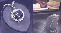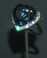 Esta es una vista más amplia del Anillo de Diamante Azul Corazón, en comparación con el famoso diamante, Hope Diamond. Fue interesante observar que el Hope Diamond aparece desmontado en esta imagen de 2010, en comparación con la de 2003, cuando se mostraba sobre un collar. La historia del Hope Diamond, se puede encontrar en la página web del Smithsonian. El diamante Hope Diamond tiene 45,52 quilates, y es quizás el más famoso diamante del mundo. |