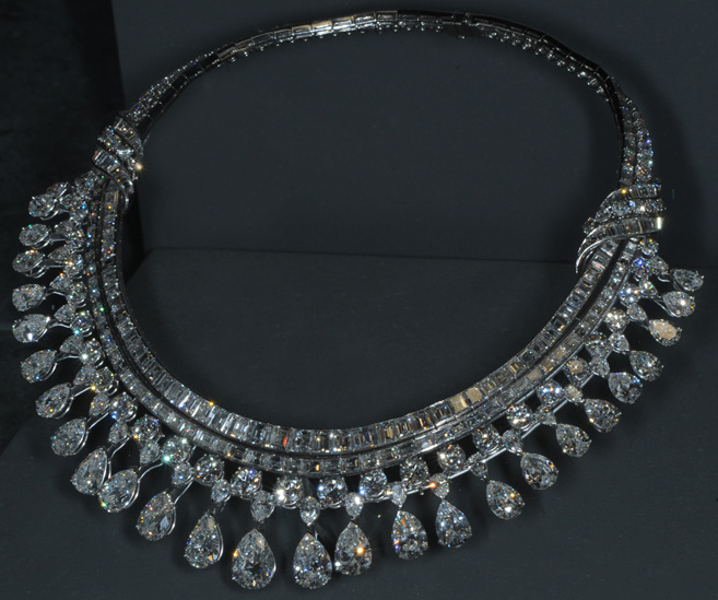 Este es el collar de diamantes Hazen. Los 325 diamantes en este collar de platino, pesan un total de 131,4 quilates. Fue diseñado por Harry Winston, Inc., un regalo para el museo Smithsonian en 1979, por Lita Annenberg Hazen.