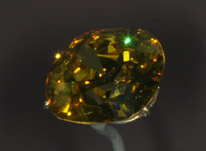 | Un diamante amarillo en comparación con un collar de gemas casi incoloras. |