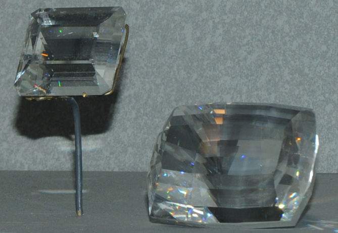 | Estas gemas de magnesita son de 93,5 y 390 quilates y proceden de la mina Pedra Preta, Brumado, Bahia, Brasil.