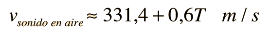 Velocidad del Sonido en el AireLa velocidad del sonido en el aire seco, está dada aproximadamente por ![]() donde TC es la temperatura en la escala Celsius, Normalmente este cálculo es suficientemente seguro, pero para una gran precisión, se debe examinar la relación mas general de la velocidad del sonido en gases. Esta velocidad del sonido, no se aplica a otros gases distintos del aire, por ejemplo el helio de un globo. Es importante notar que la velocidad del sonido en el aire está determinada por el propio aire. No depende de la amplitud del sonido, frecuencia o longitud de onda.