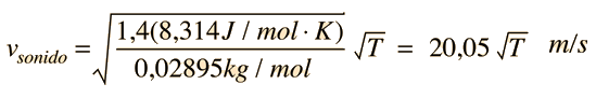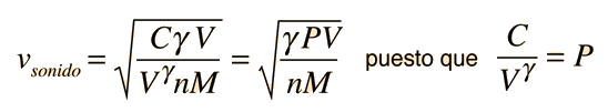 | Velocidad del Sonido en GasesLa velocidad del sonido en un gas ideal está dada por la fórmula