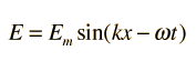 y se aplica la misma fórmula a la onda de campo magnético en un plano perpendicular al campo eléctrico. Tanto el campo eléctrico como el campo magnético son perpendiculares a la dirección de propagación x. El símbolo c representa la velocidad de la luz o de otras ondas electromagnéticas. La ecuación de onda electromagnética se deriva de las ecuaciones de Maxwell. La forma de la solución de onda plana para el campo eléctrico es