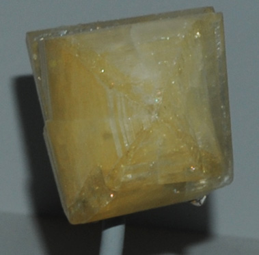 Orthoclase can form in single crystals like that shown at right, although the polycrystalline form above is the common occurrence. This crystal sample is about 5x3 cm and the gem is 61 carats. The sample is from Madagascar. |