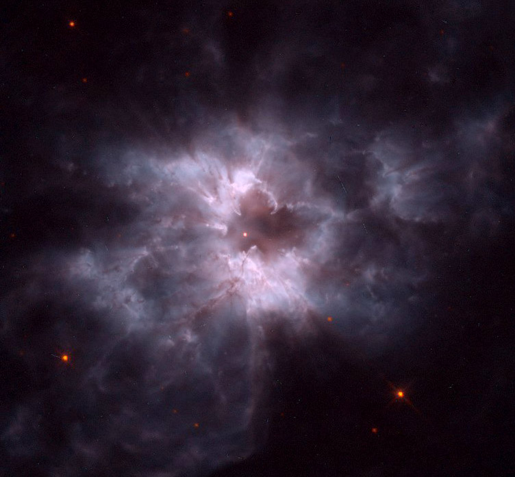 | White Dwarf Cocoon Like a butterfly, a white dwarf star begins its life by casting off a cocoon that enclosed its former self. In this analogy, however, the Sun would be a caterpillar and the ejected shell of gas would become the prettiest of all! The above cocoon, the planetary nebula designated NGC 2440, contains one of the hottest white dwarf stars known. The white dwarf can be seen as the bright dot near the photo's center. Our Sun will eventually become a "white dwarf butterfly", but not for another 5 billion years. Credit: H. Bond (STScI), R. Ciardullo (PSU), WFPC2, Hubble Space Telescope, NASA . The above false color image and was post-processed by Forrest Hamilton.