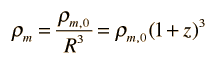 The z parameter can also be used to assess the mass density compared to the mass density ρ0 at the present time.