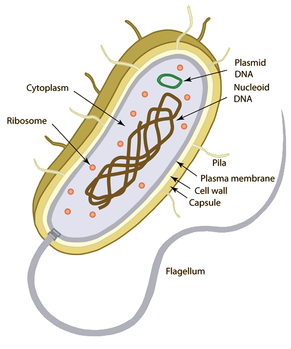 Prokaryotic Cells![]() Bacteria are examples of the prokaryotic cell type. An example is E. coli. In general, prokaryotic cells are those that do not have a membrane-bound nucleus. In fact "pro-karyotic" is Greek for "before nucleus". Besides bacteria, the cyanobacteria (blue-green algae) are a major group of prokaryotes. There are few well-distinguished internal structures in prokaryotes, in contrast to the multitude of distinct organelles in eukaryotes. The other domain of the prokaryotes is composed of the organisms called archaebacteria, which are ancient life forms which may live in extreme environments. The genetic information of prokaryotes (their DNA) is typically in nucleoid of DNA strands, but they may have additional DNA in a circular loop called a plasmid.