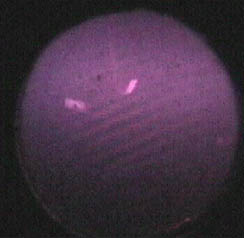The next issue occurred when attempting to resolve the doublets in the "bulls eye" circular pattern.  Eventually all members viewed doublet separation. (Diagram 2)  The problem occurred from over compensation of the interferometers distance.  Minute adjustments had to be made with the spring-loaded knobs on the face plate.