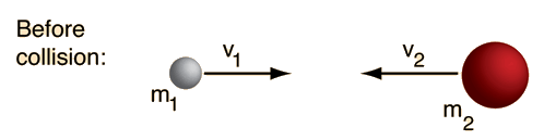 Elastic Headon CollisionThe head-on elastic collision relationships:![]() ![]() A positive velocity is taken as a velocity to the right in the calculation, so for leftward motion you should enter a negative number. The calculation assumes that a collision took place, but if you get a negative number for the velocity of approach above, this means you chose a scenario where no collision would actually happen. |