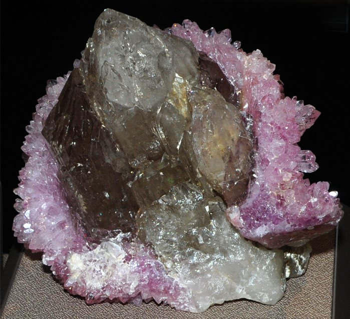 Clear crystal quartz forms naturally when silica rich solutions occur in underground cavities and fractures where conditions will allow unobstructed growth. The smooth planar surfaces reflect the symmetry of the crystal lattice, but do not represent cleavage planes. When the hexagonal symmetry is exhibited by the crystals, it represents the pattern formed by unobstructed growth.