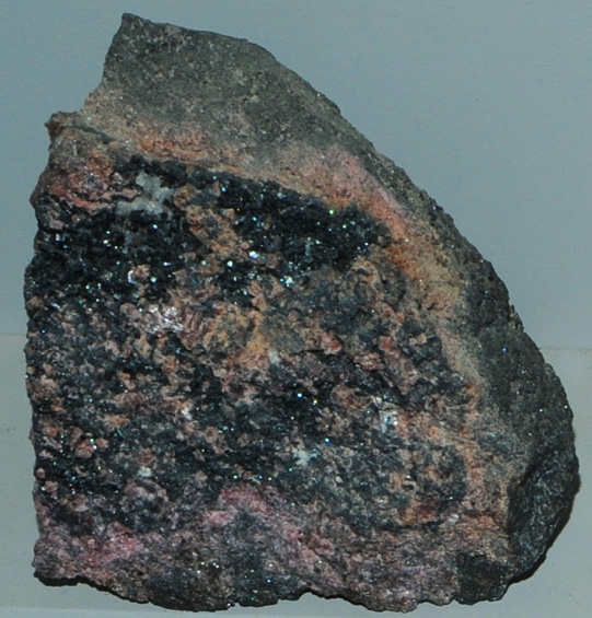 |   | (Mn,Ca)5(Mn,Fe,Sb)2SiO11This sample of langbanite is displayed in the Smithsonian Museum of Natural History. Langbanite is a silicate mineral of antimony  and manganese along with calcium and iron. It has the composition (Mn,Ca)5(Mn,Fe,Sb)2SiO11.  The sample at left is about 8 cm across and is from Langban mine, Filipstad, Varmland, Sweden.  The black crystals are langbanite.  |
