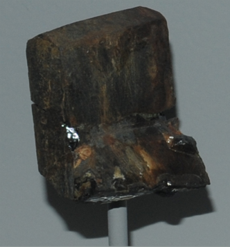 |   | (Y,Ca,Fe,Th)(Ti,Nb)2(O,OH)6This sample of aeschynite is displayed in the Smithsonian Museum of Natural History. Aeschynite contains yttrium, thorium, titanium, and niobium along with iron and calcium. It has the composition (Y,Ca,Fe,Th)(Ti,Nb)2(O,OH)6.  This sample is about 3x4.5 cm and it is from Ivelanc, Setesdal, Norway .  |