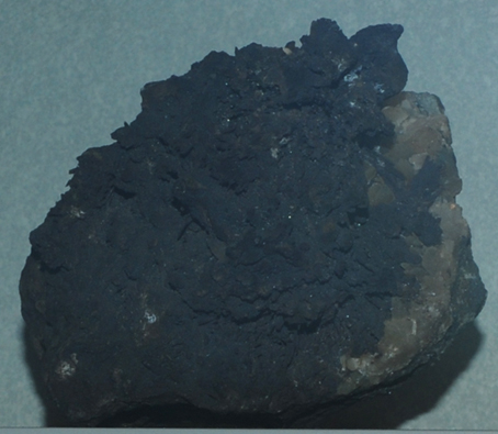 |   | MnSThis sample of alabandite is displayed in the Smithsonian Museum of Natural History. Alabandite is a sulfide mineral of manganese with the composition MnS.  This sample is about 7x5 cm and is from Broken Hill, New South Wales, Australia.  It also contains chlorargyrite and calcite.  |