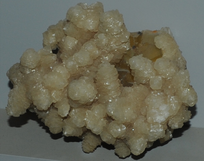|   | This sample of Benstonite is displayed in the Smithsonian Museum of Natural History. Benstonite is a carbonate mineral which contains barium, magnesium, calcium, manganese and strontium with the general composition (Ba,Sr)6(Ca,Mn)6Mg(CO3)13.  This sample is about 8x8 cm and originated in Hardin County, Illinois.   |