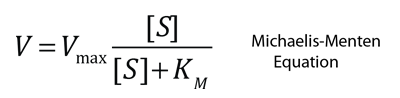 The turnover number is also called the catalytic constant, kcat. While typical turnover numbers may be in the range 1 to 1000, the remarkable enzyme carbonic anhydrase can reach 106! Another term used in the description of the catalysis is the value of the sustrate concentration [S] which is associated with a velocity V of half the maximum Vmax/2. This value is labeled KM and is called the Michaelis constant. It can be used in a relationship for the reaction velocity V called the Michaelis-Menten equation, which can be used to produce the descriptive graphic above. ![]()