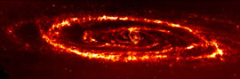 Spitzer made an observation of the Andromeda galaxy and detected evidence in the infrared image that the smaller galaxy M32 had in fact collided with Andromeda in the past.