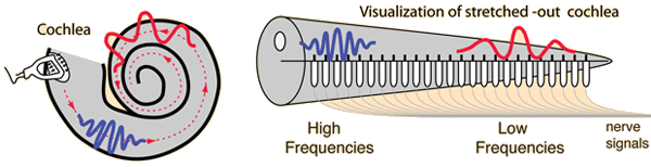 This would require a separate detectable pitch for every 0.002 cm, which is physically unreasonable for a simple peaking action on the membrane.  The normal human ear can detect the difference between 440 Hz and 441 Hz. It is hard to believe it could attain such resolution from selective peaking of the membrane vibrations. Some pitch sharpening mechanism must be operating. | Index Hearing concepts Place theory concepts | ||||||||||||