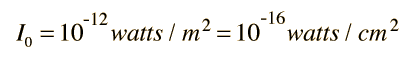 Sound IntensitySound intensity is defined as the sound power per unit area. The usual context is the measurement of sound intensity in the air at a listener's location. The basic units are watts/m2 or watts/cm2. Many sound intensity measurements are made relative to a standard threshold of hearing intensity I0 : ![]() The most common approach to sound intensity measurement is to use the decibel scale: ![]() Decibels measure the ratio of a given intensity I to the threshold of hearing intensity, so that this threshold takes the value 0 decibels (0 dB). To assess sound loudness, as distinct from an objective intensity measurement, the sensitivity of the ear must be factored in. |