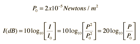 Sound PressureSince audible sound consists of pressure waves, one of the ways to quantify the sound is to state the amount of pressure variation relative to atmospheric pressure caused by the sound. Because of the great sensitivity of human hearing, the threshold of hearing corresponds to a pressure variation less than a billionth of atmospheric pressure. The standard threshold of hearing can be stated in terms of pressure and the sound intensity in decibels can be expressed in terms of the sound pressure: ![]() The relationship of sound intensity to pressure is discussed below. The pressure P here is to be understood as the rms pressure of the collection of waves which make up the sound. The power carried by a traveling wave is proportional to the square of the amplitude. The factor of 20 comes from the fact that the logarithm of the square of a quantity is equal to 2 x the logarithm of the quantity. Since common microphones such as dynamic microphones produce a voltage which is proportional to the sound pressure, then changes in sound intensity incident on the microphone can be calculated from ![]() where V1 and V2 are the measured voltage amplitudes . |