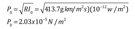 Relation of Sound Intensity to Sound PressureSound travels through air as a longitudinal wave which may contain many frequencies. The intensity of the sound may be expressed in terms of the rms pressure of the collection of waves provided that the average is over at least one period of the lowest frequency contained in the sound. The intensity relationship is analogous to the electric power relationship where the rms pressure is analogous to voltage and the wave impedance of the air is analogous to the electric resistance R. The acoustic resistance or wave impedance R of air is calculated as the density of the air times the speed of sound in air, R = ρvs. At 20°C and atmospheric pressure this resistance is: ![]() Since the acoustic resistance is independent of the sound frequency, the intensity can be expressed in terms of the sound pressure level: ![]() The pressure P here is to be understood as the rms pressure of the collection of waves which make up the sound. Making use of the sound intensity associated with zero decibels, I0 = 10-12 watts/m2, the sound pressure level (SPL) P0 associated with the threshold of hearing is ![]() This can be used to develop the expression for sound pressure level related to the threshold of hearing above. ![]() |