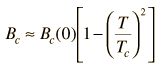 Campo Magnético CríticoEl estado de superconducción no puede existir en presencia de un campo magnético mayor que un valor crítico, incluso en el cero absoluto. Este campo magnético crítico está fuertemente relacionado con la temperatura crítica del superconductor, que a su vez está relacionada con la banda prohibida. Los superconductores de Tipo II muestran dos valores de campo magnético crítico: uno al comienzo de la superconducción mezclada con conducción normal, y otro donde cesa la superconductividad. ![]() Forma parte de la naturaleza de los superconductores, la exclusión de los campos magnéticos (efecto Meissner), siempre que el campo aplicado no supere su valor de campo magnético crítico. Este campo magnético crítico está tabulado para 0ºK y disminuye de esa magnitud con el aumento de temperatura, llegando a cero a la temperatura crítica de la superconductividad. El campo magnético crítico a cualquier temperatura por debajo de la temperatura crítica está dado por la fórmula ![]()