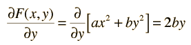 La Derivada ParcialLa derivada ordinaria de una función de una variable puede llevarse a cabo porque todo lo demás en la función son constantes y estas no afectan al proceso de diferenciación. Cuando hay más de una variable en una función a menudo es útil, examinar la variación de la función con respecto a una de las variables con todas las demás variables limitadas a permanecer constantes. Este es el propósito de una derivada parcial. La derivación se lleva a cabo en la misma forma que la diferenciación ordinaria con esta restricción. Por ejemplo, dado el polinomio de variables x e y, ![]() la derivada parcial respecto a x se escribe ![]() y la derivada parcial respecto a y se escribe ![]() |