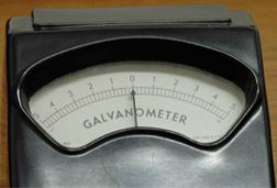 El galvanómetro es el nombre histórico que se le da a la bobina móvil de un detector de corriente eléctrica. Cuando pasa la corriente por una bobina móvil que se puede mover dentro de un campo magnético, la bobina experimenta un par proporcional a la corriente. Un resorte mantiene a la bobina en una posición fija. Con la bobina va una aguja que se mueve solidaria con ella, señalando su posición sobre una escala. La cantidad de deflexión que señale esta aguja será pues proporcional a la corriente eléctrica que fluya por la bobina. Tales medidas de movimiento fueron el corazón de los medidores de bobina móvil tales como los voltímetros y los amperímetros hasta que fueron masivamente reemplazados por los medidores de estado sólido.