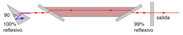 Láseres SintonizablesAunque la acción del láser por lo general implica una transición entre dos niveles de energía atómica o molecular y se trata pues esencialmente de luz monocromática, en un determinado medio puede haber más de un conjunto de niveles que pueden ser utilizados. Por ejemplo, el láser de helio-neón puede producir verde en 543,5 nm y 1523 nm en el infrarrojo, así como el conocido rojo 632,8 nm de la acción láser. Los láseres de colorante tienen tantas transiciones de láser posibles, que algunos de ellos se pueden sintonizar sobre un rango casi continuo de longitudes de onda. Una forma cómoda de ajustar el láser es colocando un prisma o una rejilla en el camino de uno de los espejos, como se ilustra a continuación. El prisma está orientado de modo que la longitud de onda deseada incide normalmente sobre el espejo en la parte posterior del prisma y por lo tanto, volverá sobre su camino en la cavidad láser. Otras longitudes de onda con diferentes índices de refracción se difractan en el prisma con un ángulo diferente y perderá el camino del haz. Con una rejilla de difracción que es como un "super prisma" con más poder de dispersión, se podría obtener una puesta a punto mas precisa. ![]() |