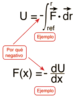 que se puede tomar como una definición de la energía potencial. Note que hay una constante de integración arbitraria en la definición, mostrándo con ello, que se puede añadir cualquier constante de energía potencial. Practicamente, esto significa que puede establecer como cero de energía potencial, cualquier punto que convenga. |