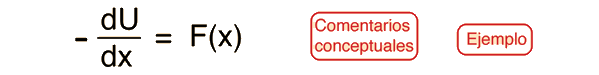 Función de la Energía PotencialSi una fuerza que actua sobre un objeto es una función de su posición solamente, se dice que es una fuerza conservativa, y se puede representar como una función de energía potencial, que para el caso de una dimensión, satisface la condición de derivada.