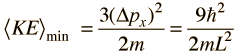 entonces la incertidumbre en el momento es ![]() La energía cinética media se puede expresar en términos del promedio del momento al cuadrado, que está relacionada con la incertidumbre del momento por ![]() El momento promedio para el movimiento aleatorio libre de la partícula en una caja, es cero. Las coordenadas y y z son equivalentes, por lo que la energía cinética media se puede expresar como ![]() ![]() Para esta partícula en una caja tridimensional, de dimensión