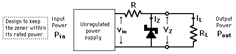 Calculation note: You may substitute values for the zener voltage, the maximum power, the input voltage, or the load resistor. The other parameters will be calculated. Default values will be entered for unspecified parameters used in the calculation.