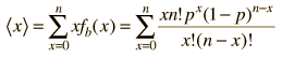 This seems a very simple expression for the mean of such a complicated function, but the result agrees with our intuition. If you throw a die, hoping to throw a "2", then the probability is 1/6. If you throw it 6 times, you would expect to get one throw with value "2". The mean or expected value for 6 throws is (1/6)(6) = 1. For such a simple expression, the proof that it is in fact the mean is rather involved. The following approach is after Appendix D of Rohlf's Modern Physics. From the definition of the mean using a distribution function, the binomial mean is ![]() The goal is to reduce this expression to just np. Since the first term in the sum is zero, since x=0, we can replace the sum with a sum starting from 1. ![]() Now cancel the common factor of x appearing in numerator and denominator. ![]() Since the summation index is a dummy variable, we make the change of variables x' = x - 1. ![]() Now factor out np. ![]() The terms in the summation above are just the binomial function for n-1 trials, and you are summing it over all values of x - so that sum must be just 1. The expression then reduces to the desired expression for the mean.