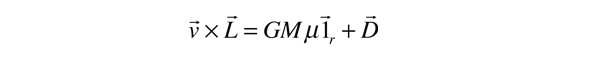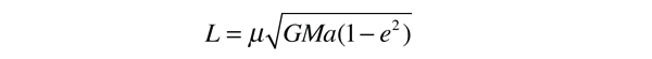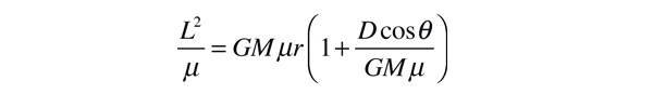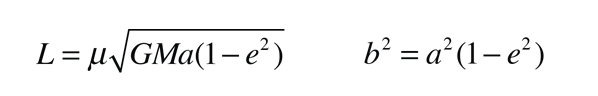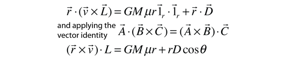 The determination that the motion of both masses in a bound binary system execute elliptical orbits about a focus point at the center of mass of the system requires the analysis of the force and angular momentum of the system. The angular momentum L of the system can be expressed as ![]() In this expression, the unit vectors in the r direction have been introduced because both the magnitude of r and its direction can change. Note that one term drops out of the vector product expression because it contains the vector product of the unit vector and itself and is therefore zero. The acceleration of the reduced mass is given by ![]() where M is the total mass of the system. As a strategy for obtaining an expression for r, the following evaluation is made: ![]() where the facts that the scalar product of two unit vectors is equal to 1 and the scalar product of the unit vector and its derivative is equal to 0 are used in addition to the vector identity. Continuing a strategy directed toward finding an expression for radius vector r in terms of the angular momentum, the above expression is modified so that it is an equality of two derivatives. The rule for differentiation of a product is used along with the fact that dL/dt=0 (conservation of angular momentum). ![]() Now integrating the two differential quantities gives ![]() where we can argue that the vector constant of integration D must be in the plane of the orbit since the other two quantities lie in that plane. To introduce the radius vector r into this expression the following procedure with a vector identity is followed. ![]() Using the final expression for angular momentum L from above, this can be put in the form ![]() The final step in showing that this is the expression for a conic section orbit is to define e=D/GMμ so that the radius r becomes ![]() This form for the equation of a conic section expresses it in terms of the angular momentum L, the eccentricity e, and the angle θ measured from the perihelion. For e<1 this is the form of an ellipse and can be expressed in terms of the semimajor axis a. ![]() Setting these two expressions equal to each other gives an expression for the angular momentum L ![]()